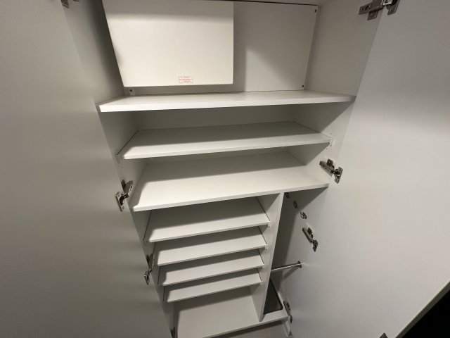 玄関を入ってすぐに目に入るシューズボックスはその収納力と機能性で玄関周りの美観を保つ重要な設備です。棚板が多数設けられており、靴のサイズや種類に応じて細かく高さを調節できるようになっています。これによりロングブーツからスニーカー、パンプスまで、様々な種類の靴を効率よく大量に収納できます。扉がしっかりと閉まるタイプなので、靴を隠して収納でき散らかりがちな玄関を常に清潔で整然とした印象に保てます。また上部にもスペースがあり、鍵などの小物やちょっとした飾りを置くことも可能です。機能的で大容量のシューズボックスは玄関の使いやすさを格段に向上させ、住まいの第一印象を良くしてくれます。