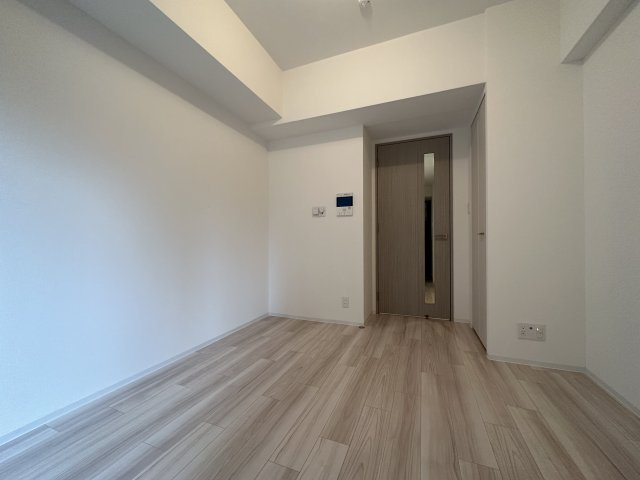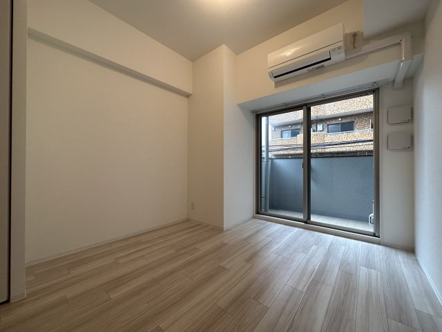 使い勝手の良い6帖の洋室は一人暮らしの拠点として理想的な空間です。明るい木目調のフローリングと白を基調とした壁紙が清潔感あふれるモダンな雰囲気を演出しています。家具の配置がしやすいシンプルな間取りのため、ソファやローテーブル、ベッドなどを置いても圧迫感が少なく快適に過ごせます。大きな掃き出し窓からは光が入りやすく開放感があります。また上部にはエアコンが設置済みで、入居後すぐに快適な室温で生活を始められます。ドア付近にはインターホンや各種スイッチ類がまとまっており、動線もスムーズ。プライベートな時間を充実させるための、機能的で居心地の良い空間です。自分の好みに合わせたインテリアで毎日を心豊かに暮らすことができます。