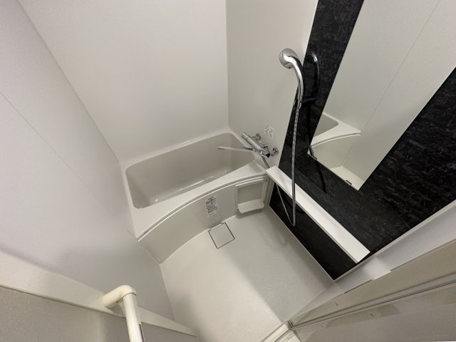 一日の疲れを癒やしてくれるバスルームは黒のアクセントパネルがシックでモダンな印象です。浴槽はゆったりと浸かれるサイズ感で心身ともにリラックスできます。注目すべきはカビの発生を抑える効果もある浴室乾燥機を完備している点です。天候を気にせず洗濯物を乾かせるため、梅雨時や花粉の時期、夜間の洗濯に大活躍します。さらに、浴室を換気することで湿気を除去し、清潔な状態を保ちやすいのも大きなメリットです。シャワーヘッドは手元で水流を調整でき、節水にも配慮されています。また、シャンプーなどを置ける棚も設置されており、使い勝手も良好。機能性とデザイン性を兼ね備えた快適なバスタイムを実現します。