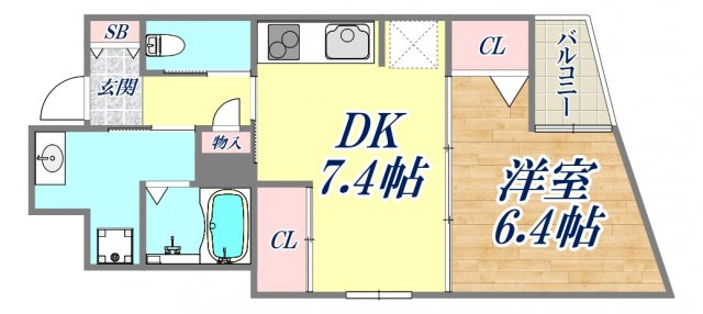 DKは7.4帖。白基調のフローリングはお洒落で良いですね♪