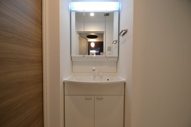 洗面台も大きく、三面鏡になっています!鏡も開くようになっているので、収納面もばっちりですね!
