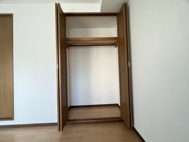 最後は収納になります。単身用マンションではめずらしい両開きの大容量クローゼットです!洋服や荷物が多い方でもすべて収納可能かと思います。シューズボックスも設置されており、棚の高さ調整が可能なのは嬉しいポイントですね!