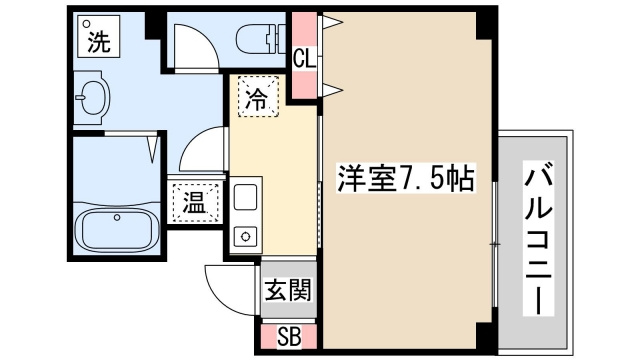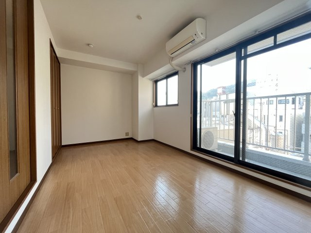 洋室の広さはなんと7.5帖もあります!一般的に1K物件は6帖の広さが多いですが、エル中山手の洋室は広くてソファや大きめのベッドも置けます。また、大きな梁がないのもポイントですね。自由にレイアウト可能です!