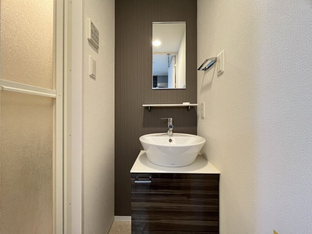 洗面台はおしゃれなおわん型になってます!この曲線がラグジュアリーを物語っていますね(笑)トイレはウォシュレット付きで実用性もかね揃えています!