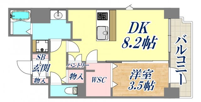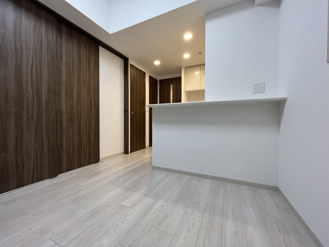 室内はダイニングキッチン8帖と洋室3.5帖となっております!!天井も高く白基調なので明るい内装となっております!こげ茶色と白の組み合わせはおしゃれですね!バルコニーも広く収納も大きいので部屋がスッキリしますね!!特にウォークスルークローゼットは魅力ポイントです!!この広さだと普段置くベッド、テーブル、テレビを置いても余裕がありますね!!過ごしやすいですね!!