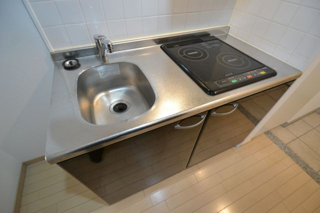 次にキッチンをご紹介いたします。IH2口コンロで収納もあるので、調理器具も収納して頂けます!!