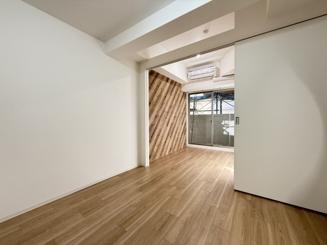 また、壁面がすっきりとしているため、インテリアのテイストを選ばず、自分好みの空間づくりを楽しめます。エアコン設置済みで、季節を問わず快適に過ごせるのも特徴。静かで落ち着いた居住空間は、リラックスした時間はもちろん、在宅ワークや読書など集中したいシーンにも最適です。日常生活を心地よく支える、バランスの取れた洋室となっています。