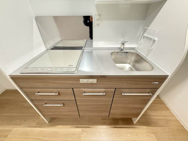 キッチンは、毎日の調理が快適に行えるよう機能性とデザイン性を兼ね備えた空間です。コンパクトながらも作業スペースをしっかり確保しており、食材の下ごしらえや盛り付けもスムーズに行えます。シンクとコンロの配置にも配慮され、動線が短く、効率的に料理ができる設計です。