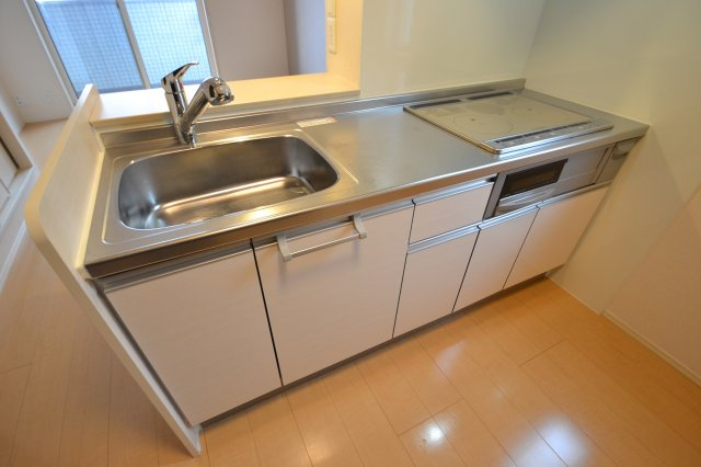 セジュール下山手通のキッチンは、1LDKの生活を快適にする機能的なシステムキッチンが設けられています。カウンタータイプのキッチンで、リビング・ダイニングとの一体感があり、調理しながら会話や配膳がしやすい間取りです。IHクッキングヒーターまたはガスコンロが備わり、複数口コンロで本格的な調理にも対応できる仕様が魅力です。シンク周りは作業スペースが確保されており、下部・上部の収納棚もあるため、調理器具や食器、調味料などを効率よく整理できます。清掃性の良いフラットなキッチンパネルやフローリングと合わせて、日々のお掃除も簡単です。キッチンは独立型ではなくリビングと近い位置にあるため、家族や来客とのコミュニケーションも取りやすく空間全体が広く感じられる設計になっています。また、都市ガス・給湯設備と一体化しており、使い勝手と安全性の両面が考えられた設計です。設備の詳細やグレードは部屋によって異なる場合がありますが、日常の料理を快適に楽しめるキッチン設備が整っています。