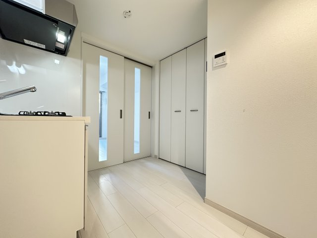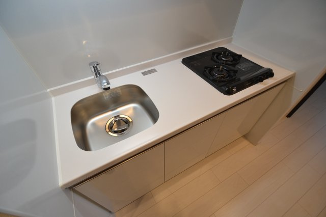 「グルーブ新神戸Aria」のキッチンは、使い勝手と機能性を両立させた1K向けのコンパクトなシステムキッチンとなっています。部屋の間取りではキッチンスペースが約2.8帖ほど確保されており、洋室と独立しすぎない動線の良い設計ながら、調理や家事がスムーズに行えるよう工夫されています。キッチンにはガスコンロが2口設置済みで、複数の料理を同時に調理できるため、日々の食事作りが効率的です。また、シンプルなシステムキッチン仕様なので、調理作業中の収納や作業スペースが確保しやすく、調理器具や調味料なども整理して置けます。加えて、清掃がしやすいフローリング床や、必要な設備が揃ったキッチン機能によって、ひとり暮らしでもストレスなく使える点が魅力です。限られた空間ながら、実用性が高く日常生活を快適にするキッチン設備が整っている物件です。